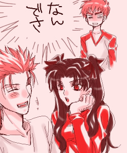 なんか槍兵と女の子(凛かセイバーで、とか思ってた)と会話してて、最後に士郎さんの心の突っ込みで終わる。場所は衛宮さん宅のあの居間。で、突っ込みは士郎さんのお得意の「なんでさ。」だった事、それらは覚えてるんだ。でも肝心の槍と女の子との会話が思い出せない。サイトに上げるか迷って、結局本に突っ込むことにしよう、とそう思ったことも覚えてるんだが…肝心の会話がホントに出てこない。