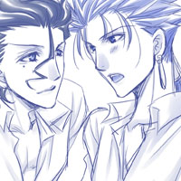 今回は金槍絵だ。金槍本も作ってみたいと思うのだが、ネタが出ないことには…な。もれなく神父殿がついてきてしまったりするのはどうかと思う。ついてこなくとも考えられるネタがお約束、と呼ばれる系のあれだけなのが悔しい所だ。素晴らしいネタが湧けばいいのだが…。精進しよう。